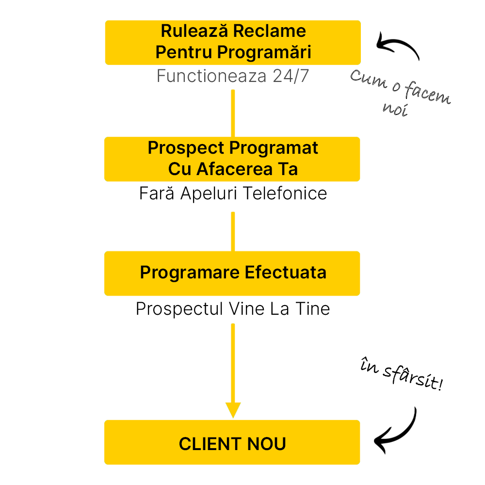 Sistemul nostru de promovare pe FB care reduce efortul din procesul de vanzări si ne generază in mod automat programări pre-calificate.