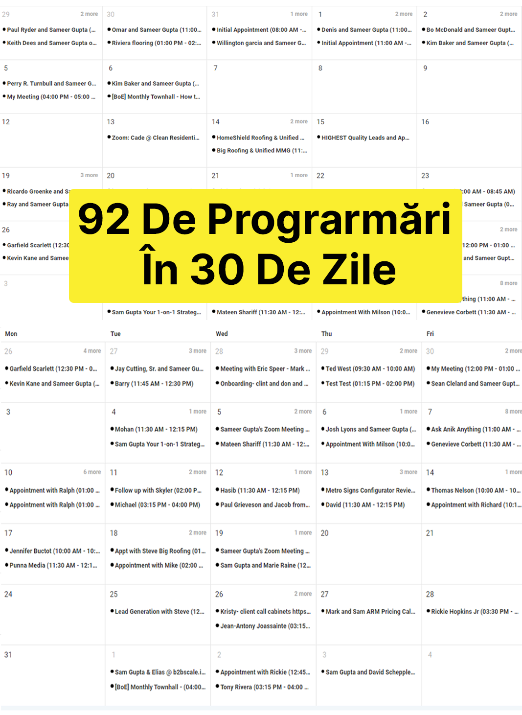 ..și aici e inca un calendar al unui client de-al nostru după ce au obținut 92 de programări în mai puțin de 30 de zile de la configurarea sistemului.