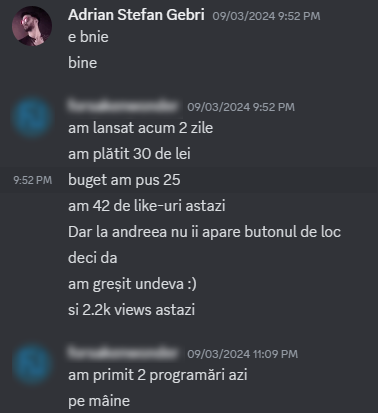 Iar după puțin timp, sistemul a început să-i genereze programări pentru mai puțin de €10 și chiar și primele vânzări.