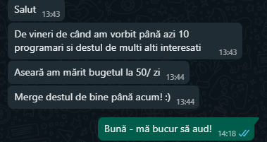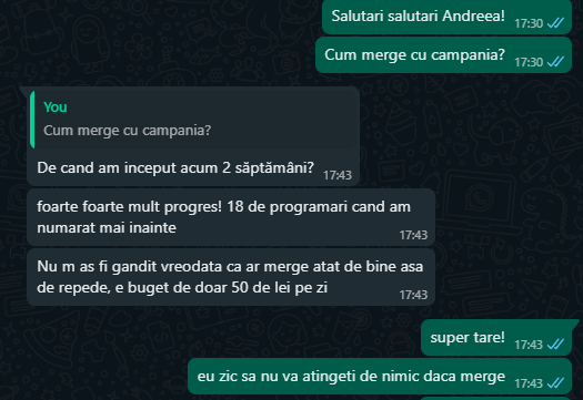 „$6,000 în primele 2 săptămâni, de la lansarea campaniilor, fără alte modificări semnificative. Recomand!"