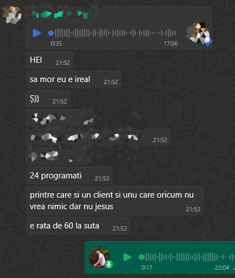 Nu cu mult după ce a început, a făcut rost de 24 de programări și mi-a trimis acest mesaj.